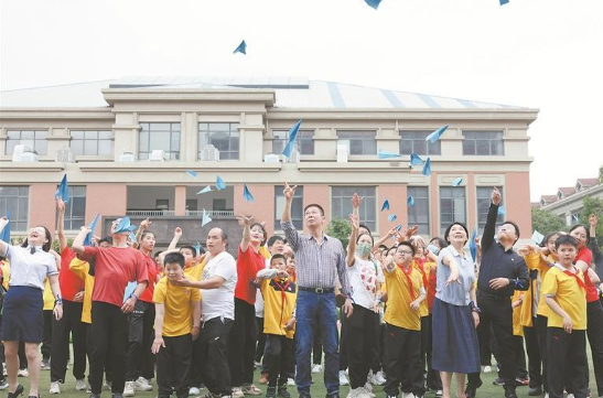 4月2日是世界孤独症日,孩子们将手中一只只象征着梦想和希望的蓝色纸飞机放飞,这是他们对自由、快乐和融入社会的渴望。