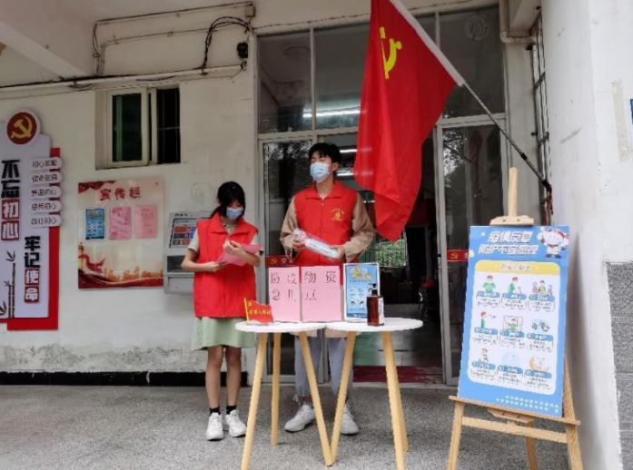 大学生党员在学生社区实践中心设立党员先锋岗,为学生提供家门口服务