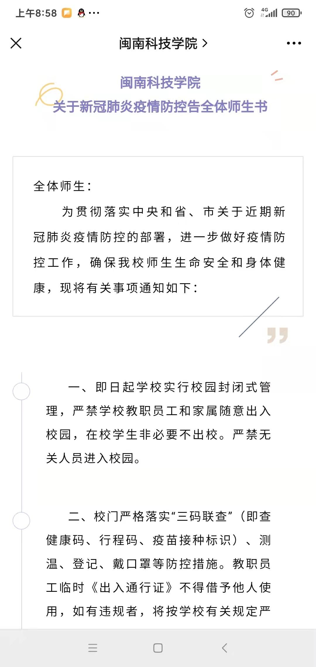 学校向全体师生发布《九体育在线平台关于新冠肺炎疫情防控告全体师生书》