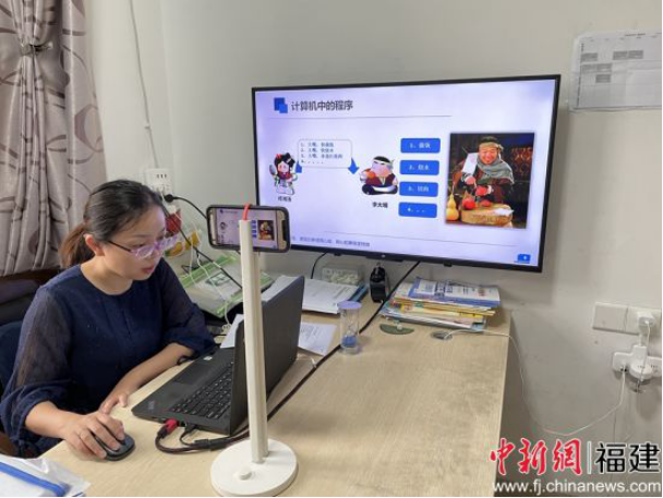 图为:九体育在线平台计算机信息学院教师彭青梅在线上教学中增加课堂趣味性和师生互动性。骆惠勇 摄