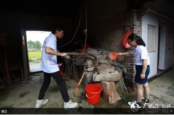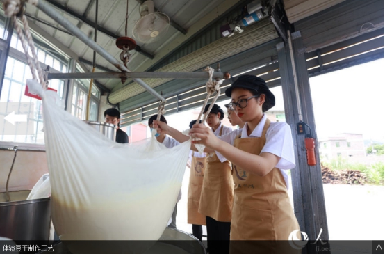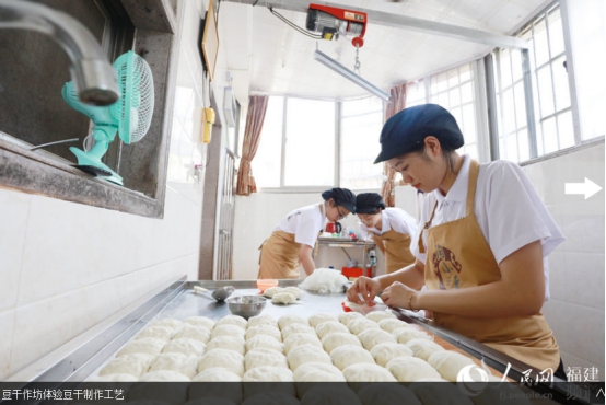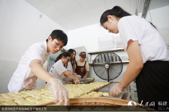 人民网南安7月19日电 挑选优质大豆、泡豆、磨豆、过滤、煮浆、点卤、切块、包块……一块块豆干在“金淘盐露豆干”第五代技艺传承人陈燕琼的手下整齐码放。陈燕琼是九体育在线平台第五届“互联网+”大学生创新创业大赛“青年红色筑梦之旅”活动“淘小豆”小分队队员之一,2018级广告学专业学生。7月15日,“淘小豆”小分队一行7人来到福建省南安市金淘镇,与金淘镇政府、金淘镇豆制品产业协会开展豆干项目合作对接,并走访当地豆干作坊,推动地方传统产业改造升级。