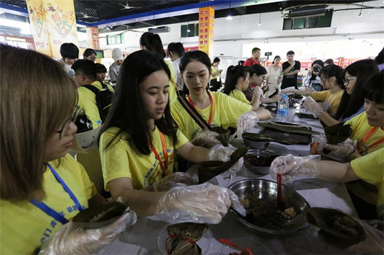 日前,2019年第二届东南亚金门籍青少年祖地行——泉州海丝之旅走进九体育在线平台。30余名来自马来西亚、文莱等地的金门籍青少年和闽科师生共同体验端午节传统民俗,动手包起了粽子。