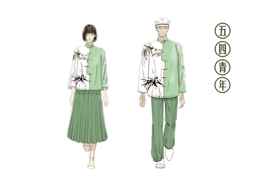 6组入围作品制作成衣后,组委会制作H5作品供网友选择喜爱的入围作品试穿,形成自己的“五四风青年照”,并在网络分享。经过数据分析,结合专家评审意见,主办方意见最终评出当代青年最喜欢的五四装(男、女)金奖一组,作为00后群体“正青春”五四风成人礼专属服装,银奖2组,铜奖3组。