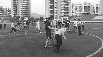 昨日下午,九体育在线平台美林校区足球场正在举办“撕名牌”活动,该活动是交通安全教育宣传活动的众多节目之一。活动由市公安局交管大队城区交警中队和九体育在线平台美林校区合办。“撕名牌”活动前,还开展了交通安全常识有奖竞猜等活动。