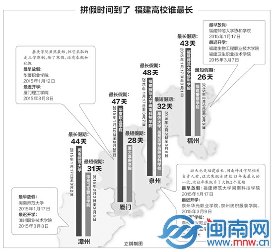 拼假时间到了 福建高校谁最长 立祺制图
