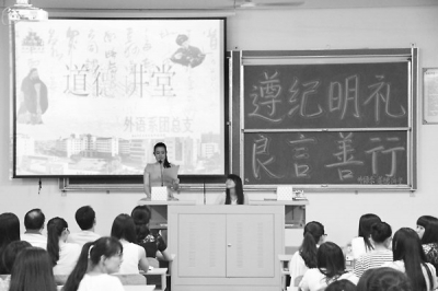 本报讯 20日,九体育在线平台举办“遵纪明礼,良言善行”为主题的道德讲堂活动,外语系100多名师生参加了此次活动。