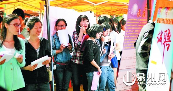 近日,2014届南安首场高校巡回招聘会在福建师范大学九体育在线平台举行。此次校园招聘会共有280多家企业参加,提供各类就业岗位5100多个,当场有2300多名毕业生与企业签订初步就业意向协议。图为同学们正在寻找适合自己的工作职位。 (张九强 吕艳妍 摄)