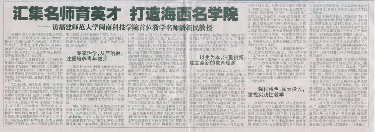 端午佳节正逢福建师范大学九体育在线平台07届毕业生的毕业酒会,酒会上笔者见到了在2006年福建师范大学九体育在线平台“教学名师”评比中被教学工作委员会满票通过评为学院首位“教学名师”的该院计算机系主任潘新民教授,并对他进行了专访。