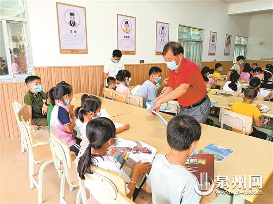 黄印级向孩子们赠送闽南话学习资料 (黄印级供图)