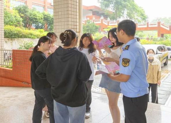 市场监管人员向师生发放《化妆品知识宣传手册》,提升青年学生的安全用妆意识和法治意识。