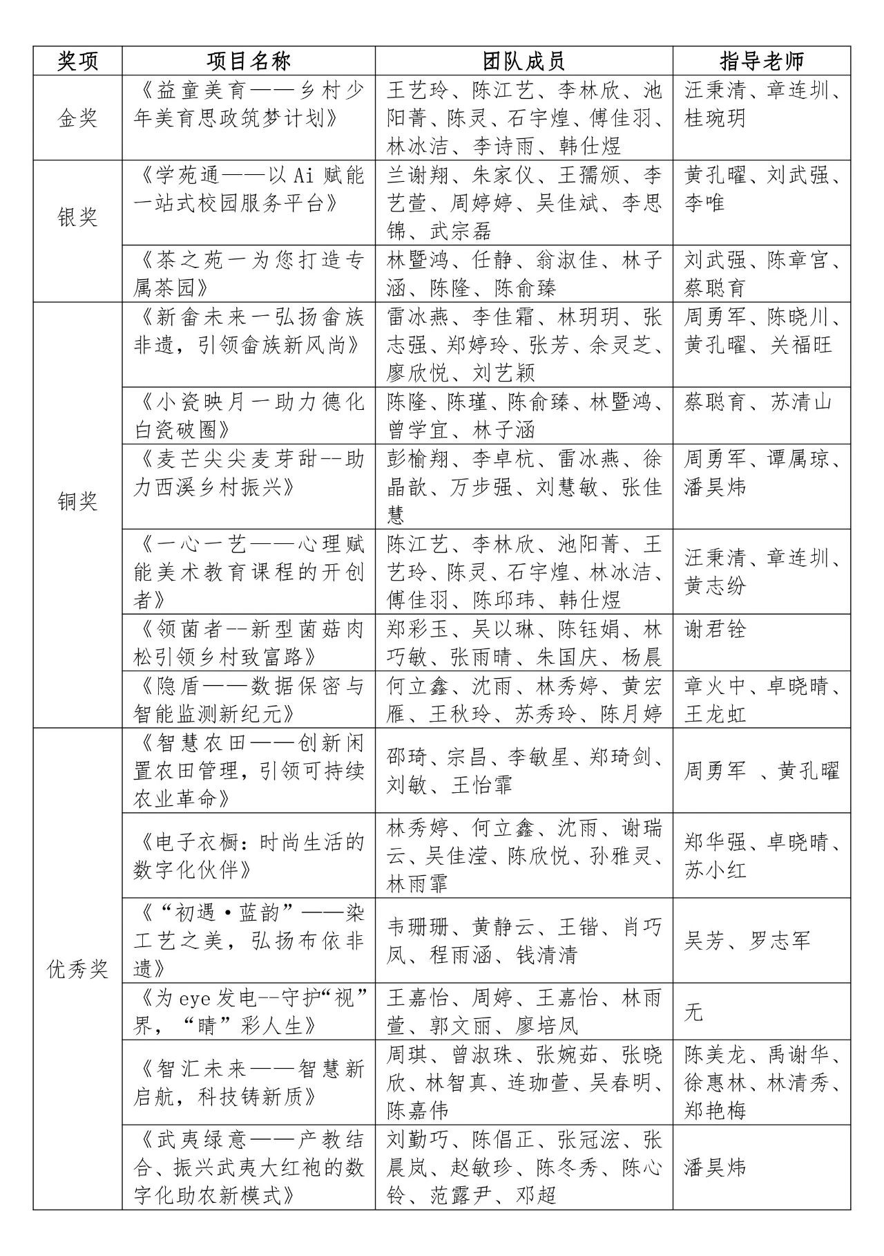 获奖名单