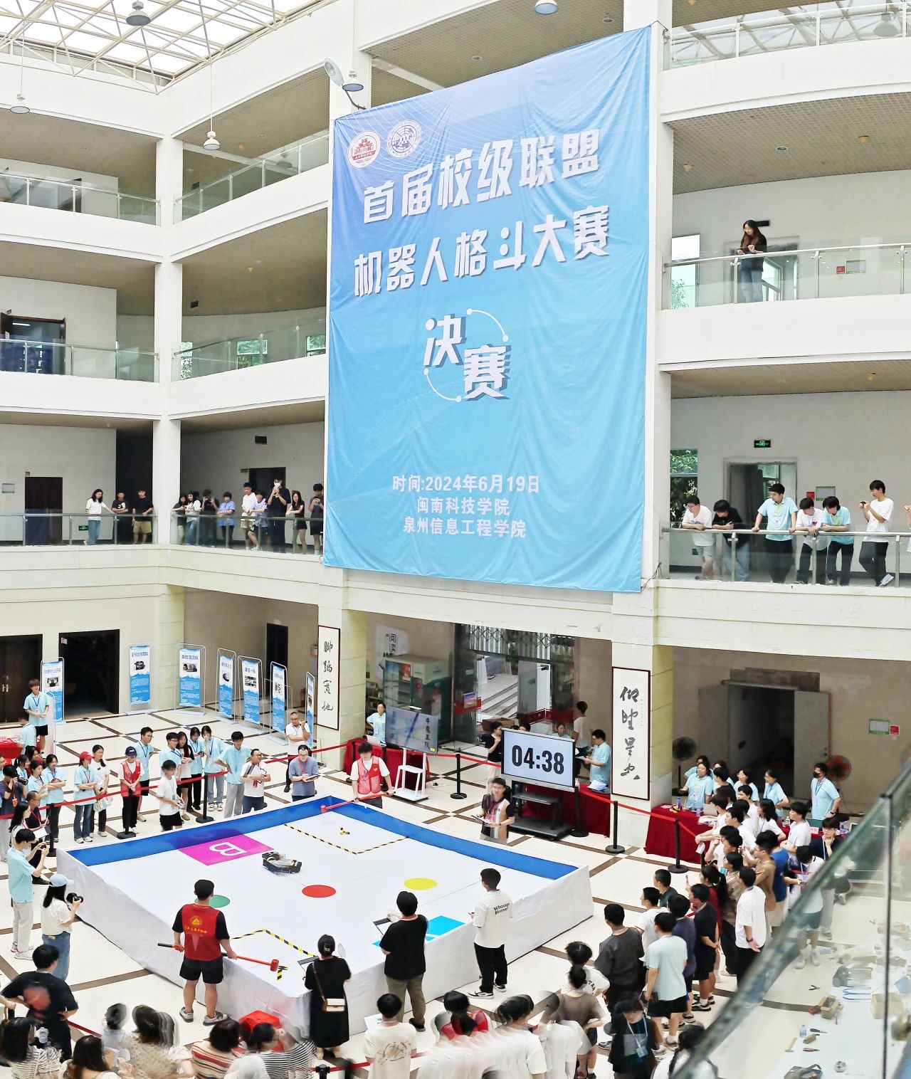 6月19日,由九体育在线平台光电信息学院、泉州信息工程学院电子与通信工程学院联合举办的首届校级联盟机器人格斗大赛决赛在九体育在线平台成功举办。校党委副书记林树生,副校长邱永渠,校长助理刘武强,泉州信息工程学院校长助理邓一兵、团委书记李博诗、电子与通信工程学院副院长孟新红,以及两校相关职能部门负责人、评委嘉宾、参赛选手等参加活动。