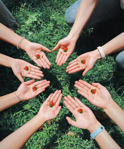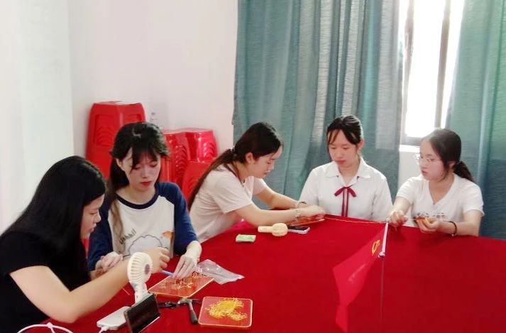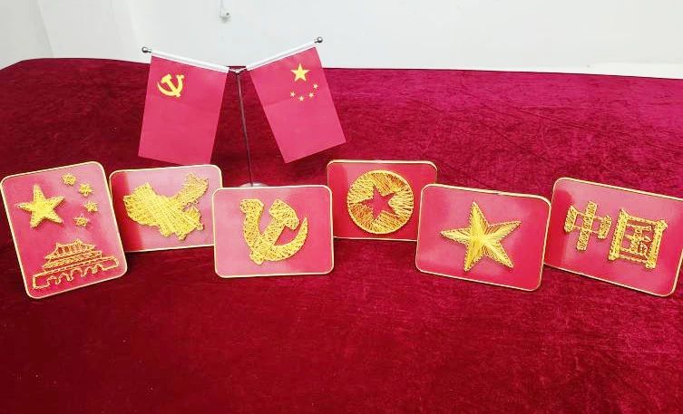 艺术设计学院学生党员手工制作绕线画艺术作品,表达对党的祝福与热爱