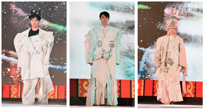 作品简介:汲取中国彝族文化,精选彝族刺绣、瓷器及银饰中的经典纹样,在廓形设计上,融合现代时尚趋势,通过不对称设计与大轮廓结合,赋予穿着者动态美感。色彩上以白灰色调为主,深浅递进,营造宁静雅致氛围此系列不仅是对彝族传统文化的致敬,也是传统与现代美学碰撞的结晶,展现了文化传承与创新融合的独特魅力。