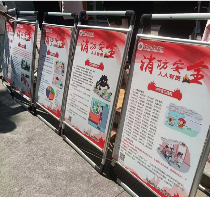 举办趣味消防宣传活动,结合消防宣传图片展、消防标志竞猜、横幅签名等活动形式,大力普及消防法律法规和消防安全知识;各二级学院利用主题班会帮助同学们全方位、多角度了解消防、学习消防。学校充分运用新媒体、学校官网、校园广播电台、LED屏标语、宣传栏等线上线下宣传阵地,开展立体化消防安全宣传,不断扩大消防安全知识的学习覆盖面,营造浓厚的消防安全宣传氛围。