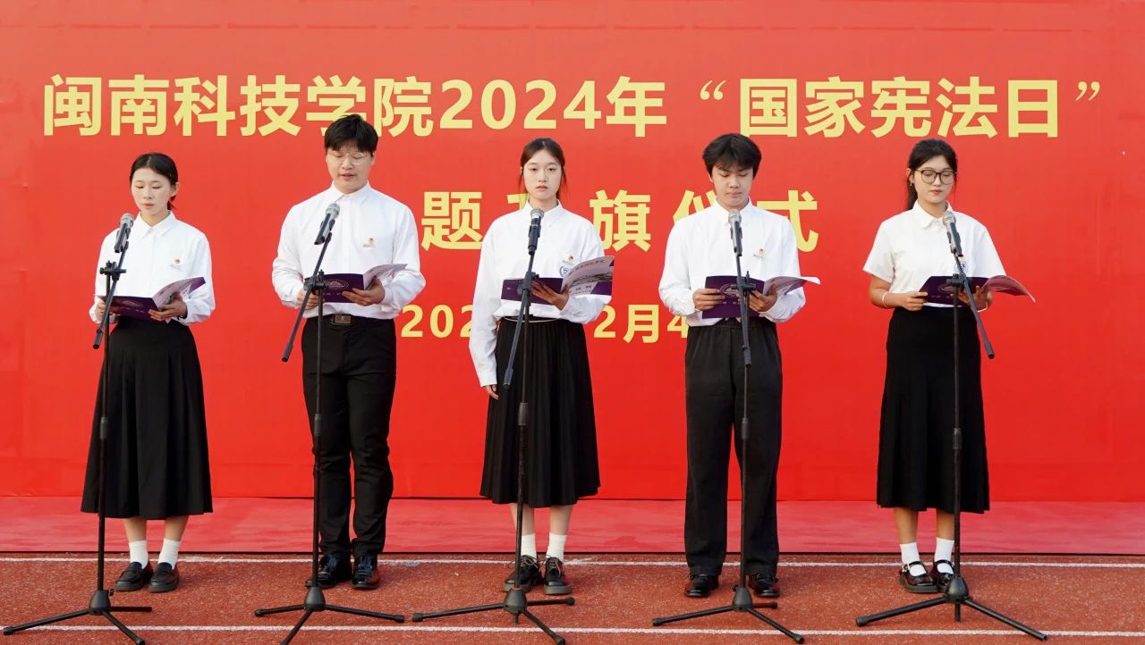 升旗仪式结束后,校党委书记李旭讲话。他指出,今年是新中国成立75周年,是实现“十四五”规划目标任务的关键之年,也是深入实施“八五”普法规划的攻坚之年,我们要进一步增强学校师生宪法意识、弘扬宪法精神,希望全校师生员工要提高政治站位,坚持以习近平新时代中国特色社会主义思想为指导,深入学习习近平法治思想、学习习近平总书记关于宪法的重要讲话和重要指示、批示精神;要大力弘扬宪法精神和社会主义法治精神,推动宪法全面贯彻实施,在师生中形成尊崇宪法、学习宪法、遵守宪法、维护宪法、运用宪法的浓厚氛围;要认真组织开展宪法宣传周活动,将宪法教育融入日常生活、专业教学和社会实践活动中,切实增强师生法治意识和法治素养,为不断健全中国特色社会主义法治体系、推动法治中国建设贡献闽科力量。