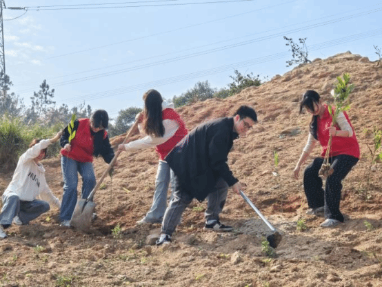3月11日,商学院学生第三党支部开展“同植初心树,共铸商院魂”主题党日活动。13名师生党员联合兰田村干部群众,有序完成挥锹铲土、扶苗填坑、提水浇灌,一起种下成片希望的小树苗,彰显青年大学生的社会责任感和使命感,推动环保理念与奉献精神在实践中生根发芽。