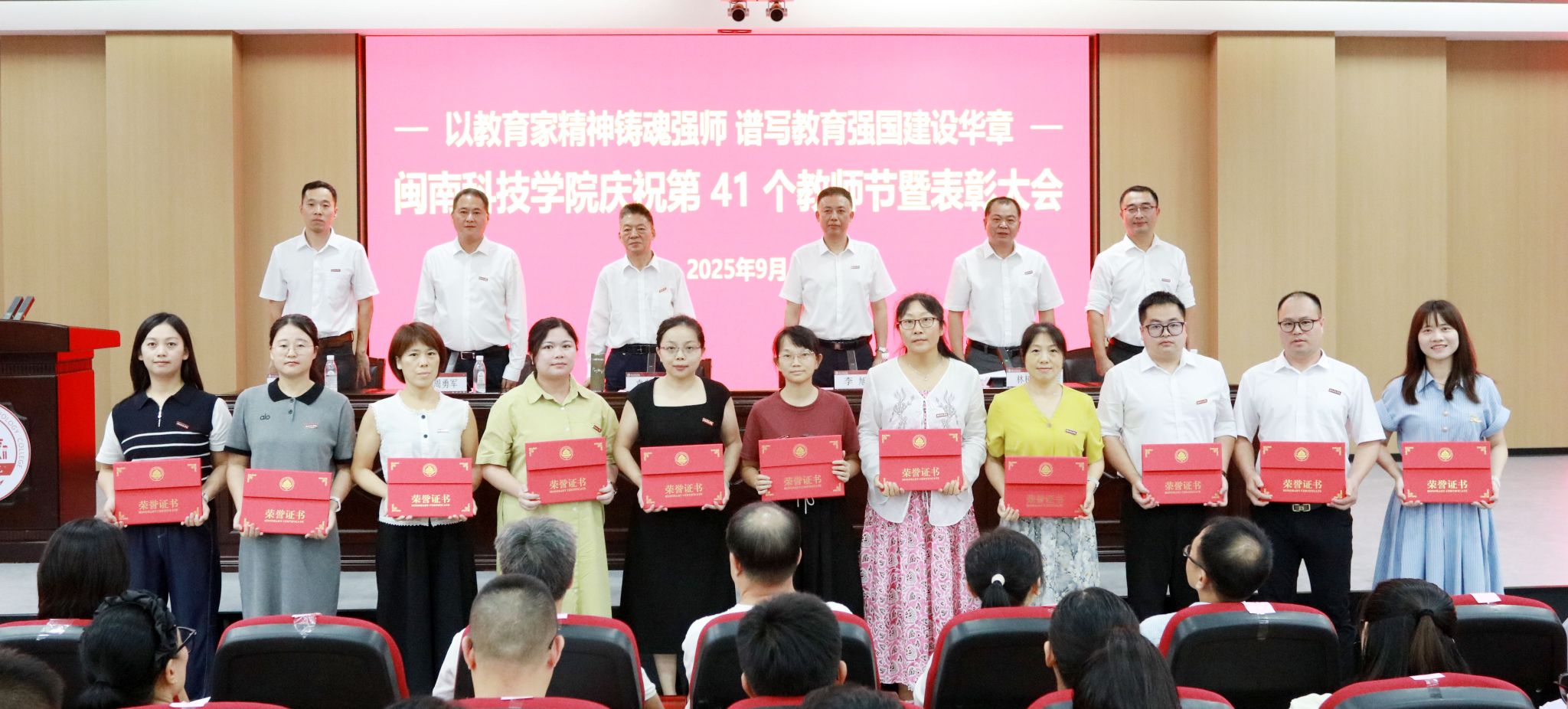 校党委书记李旭致辞,代表校党委和行政向辛勤耕耘在教育教学一线的全体教职员工致以节日的问候和崇高敬意!向受到表彰的先进集体和个人表示热烈的祝贺!他强调,在教育强国、教育强省建设的新征程中,广大教师要深入学习领会习近平总书记的重要回信精神,牢记嘱托、坚守初心,坚定信心、追求卓越,心怀大爱、乐教爱生,以昂扬奋进的精神状态不断谱写闽科发展新篇章。一要牢记嘱托、坚守初心。坚持以教育家精神为引领,坚守为党育人、为国育才初心使命,坚持不懈用习近平新时代中国特色社会主义思想铸魂育人,在不同岗位上奏响“立德树人”大合唱,培养一批又一批德智体美劳全面发展的社会主义建设者和接班人。二要坚定信心、追求卓越。以落实教育强省建设规划纲要,谋划学校事业发展“十五五”规划,迎接教育部本科教学工作合格评估为契机,牢记习近平总书记“福建没有理由不把教育办好”的殷切嘱托,坚持“仰望星空、脚踏实地”,把“论文写在田野大地上”,以教育之力厚植人民幸福之本,以教育之强夯实国家富强之基,为全面推进中华民族伟大复兴贡献闽科价值、闽科力量。三要心怀大爱,乐教爱生。要用真心、真情、真诚关爱每一位学生,严爱相济、润己泽人,做学生信赖的“良师益友”。牢记习近平总书记对教师队伍的殷切嘱托,既要有育人的知识和本领,更要有乐教的情怀和担当,以大爱践行学校“学生成才、家长放心、社会满意”的办学理念。
