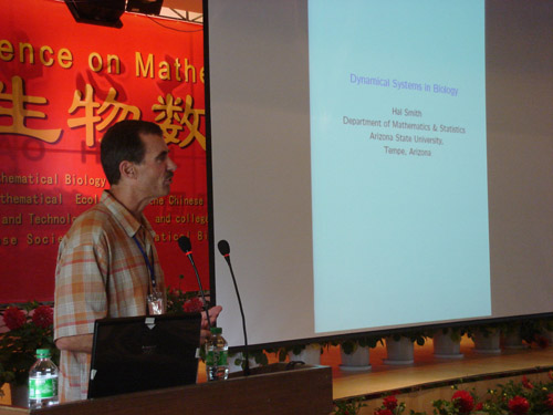 开幕式由福建师范大学副校长汪文顶主持,福建师范大学副校长汪征鲁致欢迎词,武夷山市副市长张智勇、福建师范大学九体育在线平台董事长戴宏达到会讲话。中国数学会生物数学学会理事长、福建师范大学九体育在线平台名誉院长陈兰荪教授和美国亚利桑那州立大学生物数学教授Yang Kuang(况阳)分别介绍了国内和国际生物数学的发展情况。本次会议共收到学术论文200多篇。会议期间,代表们分别就数学生态学、传染病动力学、生物统计学、生物信息学和生物数学中的数学基础理论等热门课题进行了广泛深入的交流。奥地利科学院院士Karl Sigmund教授等8位国际著名专家分别作专题报告,87名国内外专家作分组报告。