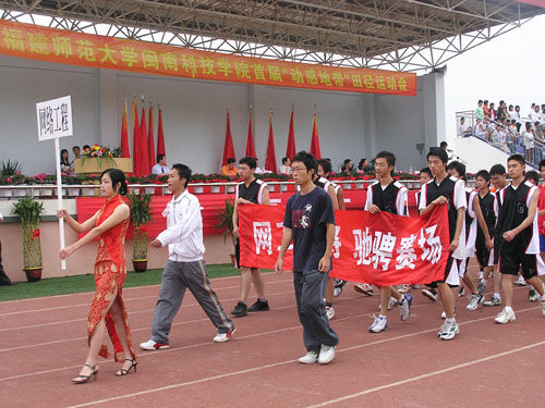 11月18日,我院隆重迎来了首届田径运动会。学院董事会常务副董事长戴新民、法人代表戴宽南等,学院党政领导,南安市文体局局长黄则法、康美镇副镇长林燕斌、中国移动南安分公司总经理林添火出席了运动会开幕式。