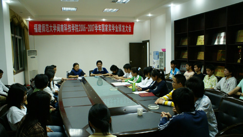 会议首先是由院党委副书记陈振祯宣读《福建师范大学九体育在线平台关于林晓玲等五名获国家奖学金同学的表彰决定》,随后院党委常务副书记刘静分别为获奖者颁发荣誉证书和奖金,并与他们合影留念。此次我院共有五名学生获得国家奖学金,每人奖励8000元,分别是04中文林晓玲、05国贸叶晓丽、05生工魏芳、06广告曾荣根、06应化王雅萍。几名获奖者领奖后都发表了获奖感言,感谢国家的奖励政策、感谢学院领导对他们的关怀、感谢老师对他们的教育、感谢父母对他们的培养,他们一致表示将再接再厉,刻苦学习,争取取得更好成绩。