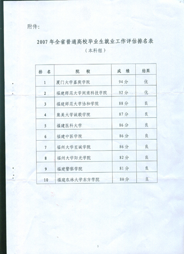热烈祝贺我院荣获2007年全省普通高校毕业生就业工作优秀单位