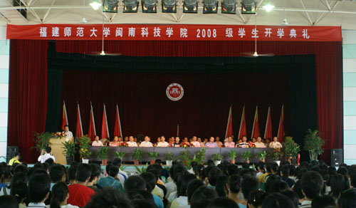 9月16号上午,我院在学生活动中心隆重召开2008级迎新大会。福建师范大学党委副书记、福建师范大学九体育在线平台党委书记郭绍生、福建师范大学副校长汪文顶,南安市委副书记曾焕楷、学院董事长戴宏达先生及其他董事会成员出席了本次大会。参加迎新大会的还有师大、南安市政府、康美镇以及学院的有关领导和教师代表、老生代表、全体新生。迎新大会由常务副书记林国庆主持。