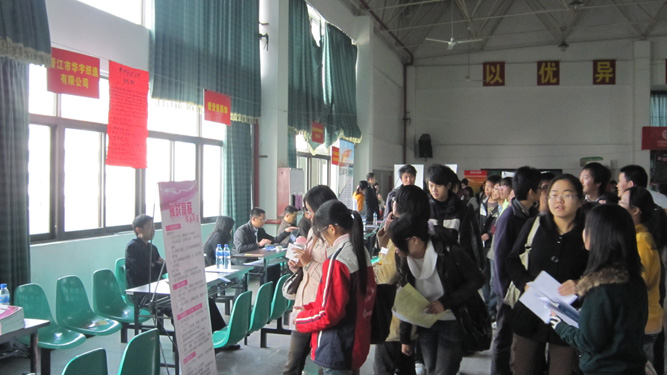 为更好地为毕业生提供就业服务,学院高度重视,精心组织了这场招聘会。由于2010届毕业生都在福建师大校本部就读,学院安排车辆为前来参加招聘会的同学接送并免费提供午餐。招聘会上,他们带着早已精心准备好的个人简历早早的就来到现场,我院学生都希望能第一个被面试,给招聘人员一个好的印象。学生记者在采访兴业银行时了解到,前来应聘的学生很有远见,素质也比较高。同时,宏发集团的负责人说道:“刚毕业的大学生往往是潜力大于能力,现在的公司需要的是人才,只有拥有了乐观自信的心态与实践能力,才有可能得到企业的青睐。”