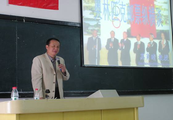 师大教授篮球队的林国平、林本椿、陈荣、苏肖晴四位教授从他们各自专业领域出发,用他们的渊博的知识和幽默的言谈,为我院师生带来了一次别开生面的学术盛宴。林国平教授的《妈祖信仰与妈祖文化》让我们领略了妈祖文化的博大精深及两岸交流的源远流长;省翻译协会副会长林本椿教授《翻译中的中式英语问题》让我们了解了英语翻译中的一些误区及信息时代下的优质翻译资源;陈荣教授的《21世纪的激光与光电子技术》让我们对激光与光电子技术有了深刻的认识;苏肖晴教授的《奥林匹克体育邮票纵横谈》让我们对奥林匹克体育的发展历程及文化内涵有了更深入的了解。四场讲座场场爆满,深受我院老师和同学们的喜爱。
