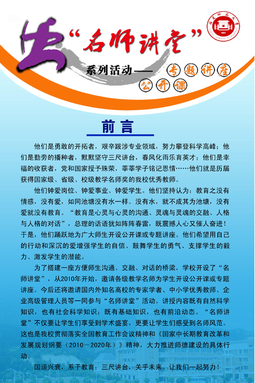 福建师范大学举办“名师讲堂”系列活动——专题讲座(公开课)
