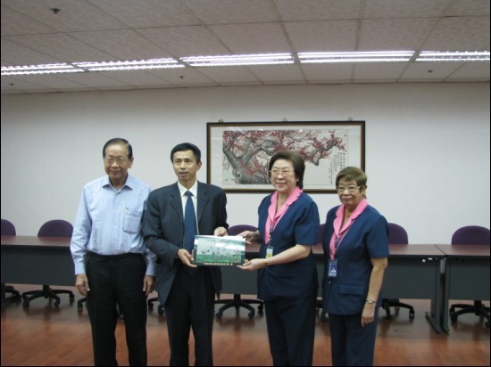 戴宏达董事长和肖华山副院长向红奚礼示大学赠送纪念牌匾(图中左二为红奚礼示大学校长)