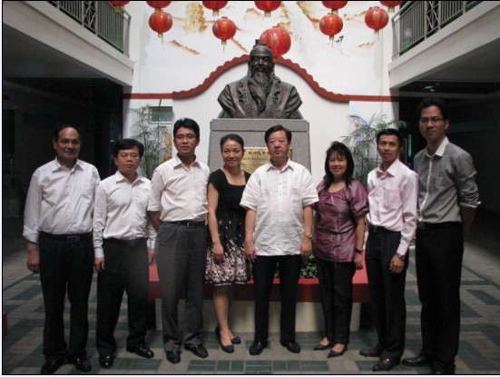 我院代表团与红奚礼示大学孔子学院院长合影(左四为孔子学院中方院长,左五为董事长戴宏达先生、左六为孔子学院菲方院长)