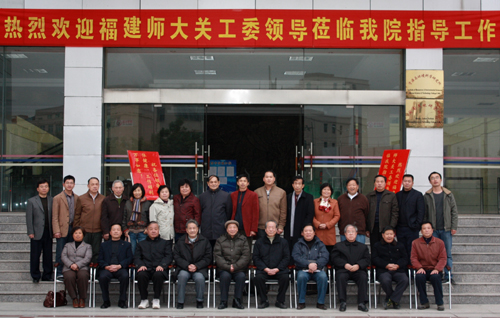 ,福建师大关工委领导一行9人在主任陈锋同志的带领下,莅临我院检查指导工作。福建师大关工委领导与我院党政领导、全体关工委委员亲切座谈。出席座谈会的师大关工委领导有主任陈锋,原主任胡绍樵,常务副主任陈汤禄、赵志清、郑锹,副主任王震生、张志忠、李淑贞,秘书长华剑。学院党政领导郭丹、林国庆、肖华山、陈振祯、周勇军,关工委主任方幼兰和部分关工委委员一起出席座谈会。座谈会由学院院长郭丹主持。