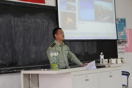 南安市消防大队马贤跃指导员于菲华教学楼C402教室为我院广大学生开展了一场题为“火灾预防与逃生自救知识”的安全教育讲座,学生保卫部负责人曾荣根老师担任主持。