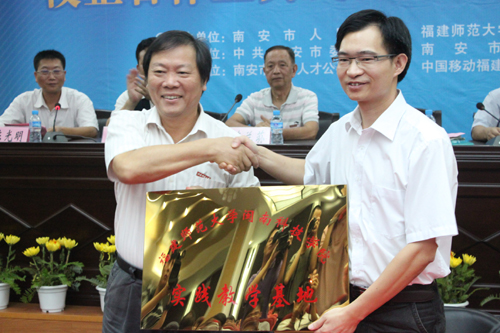 随后,学院与中宇集团签订“中宇班”奖助金协议,同南安市九牧集团等50家重点企业签订校企合作协议并授予实践教学基地牌匾。郭丹院长宣读了关于余青川等14位同志聘任学院客座教授、客座副教授的决定,并颁发聘书。