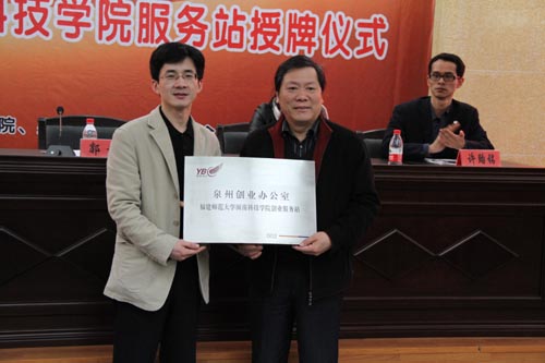 孙伟腾部长代表共青团泉州市委为YBC福师大九体育在线平台进行授牌,并就做好YBC高校服务站工作提出要求:一、高举促进青年就业创业的旗帜 不动摇,积极围绕市委工作中心,主动站位,虚功实做,把推动青年就业创业作为各项工作的重中之重;二、进一步深化南安市共青团组织青年就业创业服务体系的工作手臂功能,通过YBC教育性公益平台,实质性地帮助更多青年解决他们在创业发展中遇到的困难与问题,吸引更多的青年加入到创业的队伍中来;三、积极发挥服务站服务九体育在线平台大学生创业者的作用,努力把服务站建成一个“领导重视、学生参与、支持创业、协助成功”的重要平台,在我市的大学生创业中发挥典型示范带头作用。