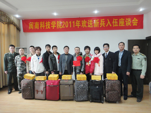 会上,周勇军代表学院全体师生向入伍新兵表示衷心的祝贺,希望他们将闽科学子良好的精神风貌带进人民军队,认真履行公民的兵役义务,将军营的优良传统带回校园。