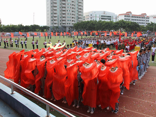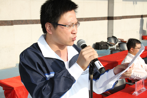 在运动员代表及裁判员代表宣誓后,礼炮鸣响,院党委常务副书记林明旭宣布了学院第七届田径运动会正式开幕,全场气氛推向了高潮。