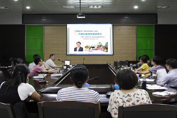 10月7日下午,院党委常务副书记林明旭在图书馆评建办会议室与学工部全体辅导员们分享了他6月份赴台湾彰化师范大学进行为期20天的校园行政管理干部培训的体会。党委副书记李彬源主持会议。