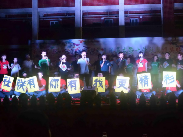 晚会中,到场领导和部门负责同志分别为获得“十佳社团”的获得者进行颁奖。晚会在大合唱《社联有我》中圆满落下帷幕。