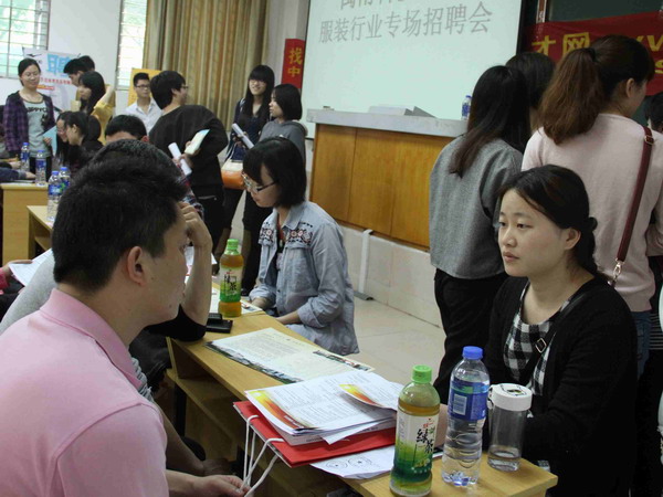 3月28日,我院在新教学楼104举行本学期首场服装行业类招聘会。福建鸿星尔克体育用品有限公司、旭日(国际)服装贸易有限公司、赛威达(中国)有限公司、卡宾服饰(中国)有限公司等4家知名企业参加招聘,提供岗位100多个。