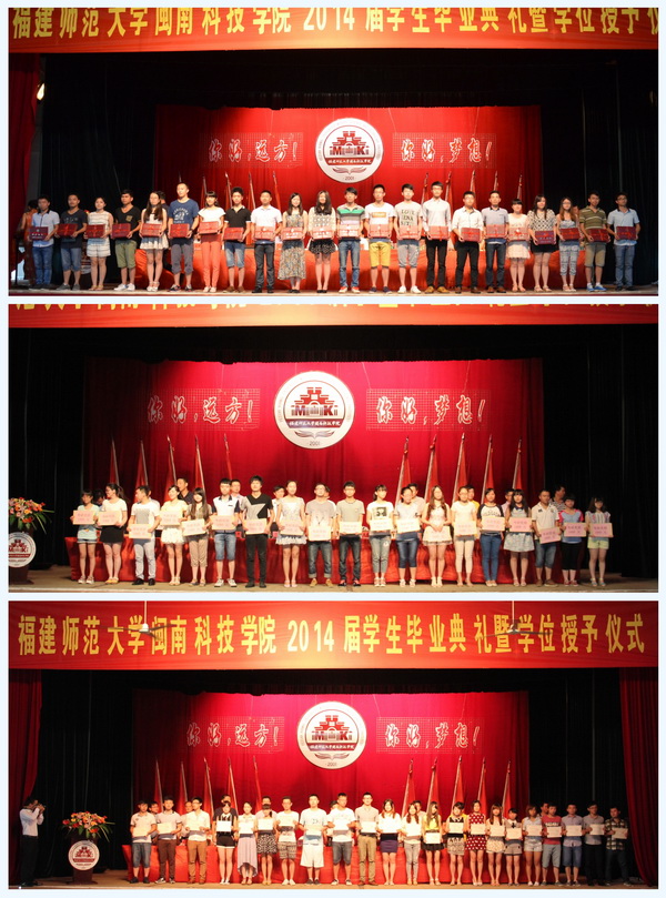 6月24日上午八点三十分,我院2014届学生毕业典礼暨学士学位授予仪式在康美校区学生活动中心隆重举行。南安市副市长李清安、康美镇党委副书记尤东辉,学院副董事长戴宽南、执行董事戴昆延,院领导邱永渠、戴景星、李彬源、吴勇,学院各系部、中心负责人,教师代表、学生家长代表、校友代表,2014届全体毕业生参加了典礼。典礼由院党委副书记李彬源主持。