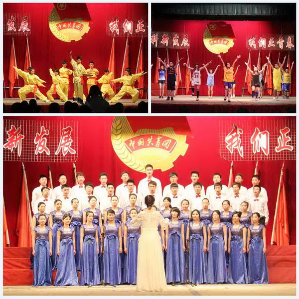 最后,大会在热情奔放的大合唱《迎风飘扬的旗》和《光荣啊,中国共青团》中圆满落幕。