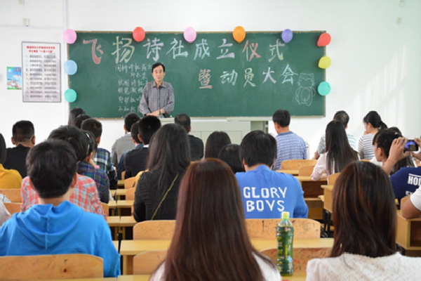 据悉,飞扬诗社以诗词创作为主、成员学习交流为辅的学生社团联合会下属协会组织,由经济管理系2013级市场营销专业黄宁生同学申请成立,指导老师由人文艺术系王安群老师担任。