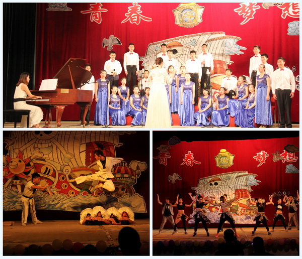 晚会在青春活力的街舞中拉开序幕。随后,上演了花样跳绳协会的《绳彩飞扬》、舞蹈协会的《态度与气》、《Pian B》、尚武社的《武道魂》、声乐社的《串烧爱之初体验》、大学生艺术团的《梦飞扬》、《菊花台》、《礼仪我先知,文明道德行》,话剧社的《与人相处》,时装设计协会的《Mystrious》等同学们自编自导自演的节目,演出形式多样、精彩纷呈,现场高潮迭起,众多师生参与其中。晚会在《带上爱飞翔》美妙的歌声中落下帷幕。