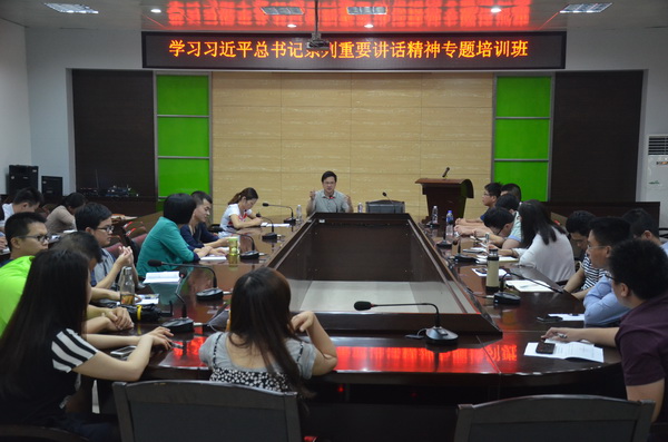 近日,我院学习贯彻习近平总书记系列重要讲话精神专题辅导报告在图书馆评建办举行,院党委副书记李彬源为各党支部书记和辅导员作了一场题为《高校思想政治教育的视域转换》辅导报告。报告会由党委工作部部长陈碰仔主持。