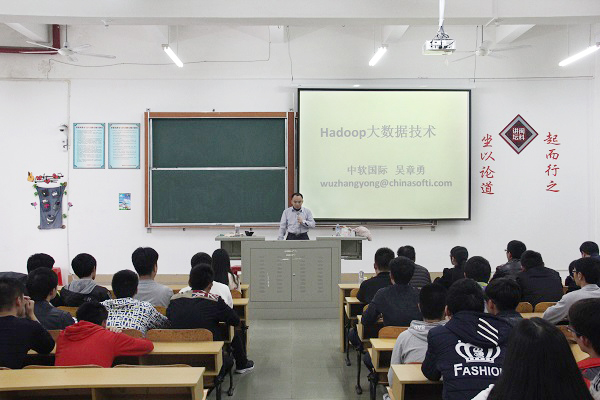 讲座上,吴章勇博士从Hadoop职位、大数据背景、Hadoop大数据关键技术三大内容分析了Hadoop大数据技术在当今社会技术上占有重要地位,并分析了Hadoop大数据是一个分布式文件系统合并执行环境、让用户更便捷地处理海量数据的技术,具有扩容能力高、成本低、高效率、可靠性强的特点,且在消费行业、金融服务、食品安全、医疗卫生、军事、交通环保、电子商务、气象多种领域的广泛运用,就业前景宽广。