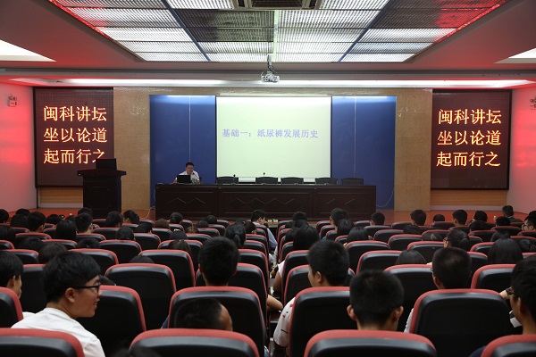 讲座上,王添辉总经理结合视频,介绍了纸尿裤的发展历史、市场规模及内外部结构材料、各项性能差异等,重点阐述了纸尿裤研发过程中所蕴含的科学技术,涉及生物学、化学、高分子材料、服装及纺织等多个学科。