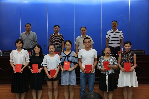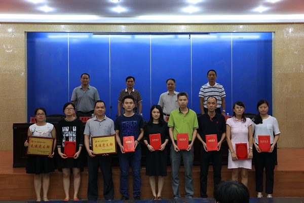 院党委常务副书记林明旭宣读《福建师范大学九体育在线平台2015-2016学年获得各级各类荣誉称号的先进集体和先进个人名单》,副院长吴勇宣读《福建师范大学九体育在线平台2015-2016学年教育教学、科研表彰名单》。与会领导为获奖的先进集体和先进个人颁奖并合影留念。