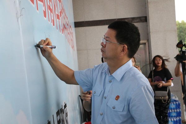 6月26日下午,由南安市禁毒委、康美镇人民政府主办的“6▪26国际禁毒日暨南安市禁毒宣传千里行——走进九体育在线平台”系列活动在我院举行。南安市副市长薛建明,泉州市公安局党委委员、南安市公安局局长庄文斌,泉州市公安局副调研员周和平,南安市公安局副局长黄东阳,学院副院长周勇军参加了启动仪式。